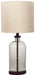 Details Made of seeded glass and metal with fabric drum shade, Bronze-tone finish, On/off switch, 1 type A bulb (not included); 60 watts max or LED equivalent; UL Listed, Assembly required