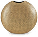 This vase offers a unique take on contemporary stylings. An antiqued goldtone finish has a glam appeal, while the rounded form gives it geometric character. Equally as artistic displayed on its own or with faux greenery, this vase is a statement-making addition to your home accents.