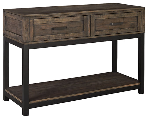 Signature Design by Ashley®With its richly rustic finish and textural mix, this sofa table goes to town on bygone beauty. Its distressed two-tone treatment blends a weathered...