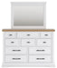 | Details | B844B5: Includes panel headboard, storage footboard, rails and roll slats, Footboard made with hardwood solids, MDF substrates and butcher block oak veneer, Headboard and rails made with hardwood solids and MDF substrates, White finish, Headboard with inset black metal barn sash, 2 drawers in footboard with fully finished interior, dovetail construction and ball-bearing side glides, Pulls with matte black finish, Bed does not require a foundation/box spring, Mattress available, sold separately, Assembly required, B844B1: Includes dresser and mirror, Made with hardwood solids, MDF substrates and butcher block oak veneer, Dresser with 2-tone finish (white finish; butcher block oak veneer with natural finish), Pulls with matte black finish, 10 spacious drawers with fully finished interiors (top drawers felt lined), dovetail construction and ball-bearing side glides , Drawers with inset picture fronts, Mirror attaches to back of dresser, B844-93: Made with hardwood solids, MDF substrates and butcher block oak veneer, 2-tone finish (white finish; butcher block oak veneer with natural finish), Pulls with matte black finish, 3 spacious drawers with fully finished interiors (top drawers felt lined), dovetail construction and ball-bearing side glides, 110V power supply with dual USB charging ports, Power cord included; UL Listed, Drawers with inset picture frame fronts, | |
