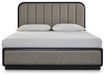 Rowanbeck King Upholstered Panel Bed with Mirrored Dresser and Nightstand