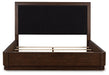 | Details | Includes upholstered panel headboard, footboard, rails and slats , Made with hardwood solids, mango wood veneer and MDF substrates , Side rails feature laminated solid hardwood slat support rails (or LVL) with glued and screwed blocking for added strength , Complex, rich dark brown finish , Foam headboard cushion with polyester upholstery , Foundation/box spring required, sold separately , Mattress available, sold separately , USB-A and USB-C charging ports , Power cord included; UL Listed, Assembly required | |