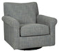 Sporting a tantalizing tweed weave fabric in such a soothing blue hue, this swivel glider accent chair gives the classic roll arm chair a modern twist. Smooth, 360-degree swivel caters to your comfort—and your viewing pleasure. Gentle glider feature is designed to rock your cares away.