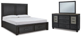 Foyland California King Panel Storage Bed with Mirrored Dresser