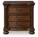 Details B764B10: Includes poster headboard/footboard panels, rails and headboard posts, Made with hardwood solids, cherry veneer with MDF substrates, decorative cast resin and furniture grade plastic components , Cherry brown finish, Headboard with metallic accent filigree, Foundation/box spring required, sold separately, Mattress available, sold separately, Assembly required, B764B1: Includes dresser and mirror, Made with hardwood solids, cherry veneer with MDF substrates, decorative cast resin and furniture grade plastic components , Cherry brown finish, Decorative metal drawer pulls with dark bronze-tone finish, 7 drawers with fully finished interior, dovetail construction and ball-bearing side glides, Mirror attaches to back of dresser, B764-93: Made with hardwood solids, cherry veneer with MDF substrates, decorative cast resin and furniture grade plastic components, Cherry brown finish, Decorative metal drawer pulls with dark bronze-tone finish, 2 drawers with fully finished interior, dovetail construction and ball-bearing side glides, Pull-out tray behind bottom drawer,