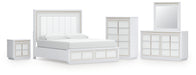 Chalanna California King Upholstered Storage Bed with Mirrored Dresser, Chest and Nightstand