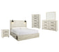 | Details | B192-46: Made of engineered wood (MDF/particleboard) and decorative laminate, Wispy white finish over replicated oak grain with authentic touch, Large-scale hardware with dark finish, 5 smooth-gliding drawers, Drawer interiors are lined with a faux linen laminate for a clean, finished look, Safety is a top priority, clothing storage units are designed to meet the most current standard for stability, ASTM F 2057 (ASTM International), Drawers extend out to accommodate maximum access to drawer interior while maintaining safety, B192-92: Made of engineered wood (MDF/particleboard) and decorative laminate, Wispy white finish over replicated oak grain with authentic touch, Large-scale hardware with dark finish, 2 smooth-gliding drawers, Drawers lined with faux linen laminate for finished aesthetic, 2 slim-profile USB charging stations, Power cord included; UL Listed, B192B1: Includes dresser with mirror, Made of engineered wood (MDF/particleboard) and decorative laminate, Wispy white finish over replicated oak grain with authentic touch, 6 smooth-gliding drawers, Drawer interiors are lined with a faux linen laminate for a clean, finished look, Large-scale hardware with dark finish, Mirror attaches to back of dresser, Assembly required, B192B27: Includes headboard, footboard, two side storage, rails and slats, Made of engineered wood (MDF/particleboard) and decorative laminate, Wispy white finish over replicated oak grain with authentic touch, Large-scale hardware with dark finish, 2 decorative sconce lights, LED with 3 AA batteries, 4 smooth-gliding storage drawers, 4 storage cubbies, 2 slim-profile USB charging ports, Power cord included; UL-listed, Bed does not require additional foundation/box spring; accommodates most zero clearance adjustable bases with the addition of a bunkie board, Mattress available, sold separately, Assembly required, | |