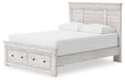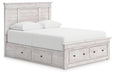 | Details | Includes panel headboard, storage footboard, under bed storage unit, platform rails and roll slats , Made with engineered wood (MDF/particleboard/plywood) and decorative laminate for the right balance of affordability and durability, Whitewash replicated worn through paint over replicated wood grain with authentic touch, Decorative laminate replicates natural or man-made material surfaces with consistent color, pattern and texture, Handles with dark bronze-tone finish, 4 smooth-gliding storage drawers, Bed does not require additional foundation/box spring; accommodates most zero clearance adjustable bases with the addition of a bunkie board , Mattress available, sold separately, Assembly required | |