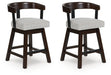 Modern sophistication, beautifully served. This swivel counter height stool raises the bar with a cool, contoured back design with a comfortably cushioned seat. Dark and rich, the monochromatic finish enhances its sleek profile. A seamless 360-degree swivel feature offers functional appeal.