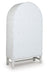 Details Made with hardwood solids, mango wood veneer, MDF substrate and metal, Antiqued white finish, Dark pewter-tone knobs, 2 glass-front doors with black metal frames, 3 fixed shelves, Assembly required