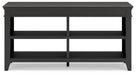 | Details | Made with solid wood frames, elm veneer and MDF substrate, Vintage black finish, Open storage, 2 adjustable shelves, Assembly required | |