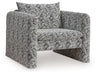 This fashion-forward accent chair keeps comfort and contemporary style at top of mind. Its eye-catching black and white geometric pattern makes a bold statement while remaining versatile enough to pair with other neutrals or pops of color. A low-profile back and streamlined silhouette lend a sophisticated, trend-right vibe to your space.