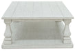 | Details | Made with hardwood solids, elm veneer, MDF substrates and cast resin, Antiqued white finish, 4 cast resin baluster legs, Open lower shelf, Assembly required | |
