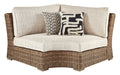 Sporting an easy-on-the-eyes look inspired by driftwood, this curved corner chair with cushion elevates the art of alfresco living. Beautiful and durable enough for indoor and outdoor use, the high-style/low-maintenance seating entices with plush, removable cushions wrapped in Nuvella® fabric that’s a breeze to keep clean.