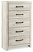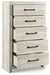 | Details | Made of engineered wood (MDF/particleboard) and decorative laminate, Wispy white finish over replicated oak grain with authentic touch, Large-scale hardware with dark finish, 5 smooth-gliding drawers, Drawer interiors are lined with a faux linen laminate for a clean, finished look, Safety is a top priority, clothing storage units are designed to meet the most current standard for stability, ASTM F 2057 (ASTM International), Drawers extend out to accommodate maximum access to drawer interior while maintaining safety | |