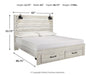 | Details | Includes headboard, footboard and rails, Made of engineered wood (MDF/particleboard) and decorative laminate, Wispy white finish over replicated oak grain with authentic touch, Large-scale hardware with dark finish, 2 decorative sconce lights, LED with 3 AA batteries, 2 smooth-gliding storage drawers, 2 slim-profile USB charging ports, Power cord included; UL-listed, Foundation/box spring required, sold separately, Mattress available, sold separately, Assembly required, Bed is not compatible with an adjustable base | |