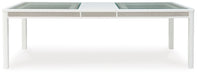 | Details | Made with solid wood components, MDF substrate and decorative PVC laminate, Bright white lacquer finish, Tabletops feature rhinestone and textured PVC framing with glass panels, Rhinestone accent trim, Seats up to 10, Removable center leaf, Table extends by pulling both ends and dropping in leaf, Assembly required | |