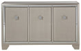 Reflect your love for contemporary style with this accent cabinet. It features a mirrored top and beveled mirror accents, adding both light and a touch of glam to your space. Decorated with faux crystal and chrome-tone pulls, the textured silvertone door fronts open to reveal adjustable shelving to meet all your storage needs.