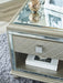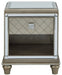 Details Made of wood, engineered wood, veneer and mirror, Metallic silvertone finish, Single smooth-gliding drawer, Inset beveled mirror panels, Inset faux crystal adorned pulls, Assembly required