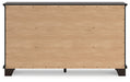 | Details | Made with hardwood solids, engineered wood veneer and MDF substrates, Dark brown finish, Metal bar pulls with bright nickel-tone finish, 7 smooth-gliding drawers with dovetail construction and metal center guides, Drawer interiors are lined with a wood grain laminate for a clean, finished look, Top moulding | |