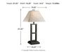 Open-ended style. This table lamp offers a strong linear design, with a rustic metal base softened by the textural waves of a chic linen-look shade. We love how the center cutouts keep these table lamps so light and airy.