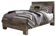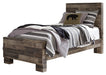 Modern yet hefty. This queen panel bed makes an urban eclectic statement. Seasoned raw wood look merges with the clean lined design we love today. Muted rustic finish over replicated pine grain maintains its authenticity for a beauteous look. Mattress and foundation/box spring available, sold separately.