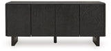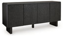 | Details | Made with solid wood, Black finish, Door fronts with carved pattern, 4 doors with push magnet function, 2 shelves, Openings in back for electronics, Minor assembly required; simply lay flat and attach legs | |