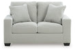 The crisp neutral hue and striking design details of this loveseat create a living room that expertly reflects your modern taste. For irresistibly cool textural appeal, the ultra-soft fabric is enhanced by a small-scale corded look. With a clean-lined silhouette complete with track arms, this loveseat allows you to take a trend-right approach to everyday living.
