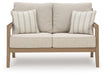 This loveseat is a beautiful addition to any outdoor living space. Effortless in its simplicity, this piece echoes your easygoing sensibilities. Combining durable, cutting-edge engineered materials, its Weatherwood construction enhances the contemporary design. Rest assured, the thick cushions and accent pillows are wrapped in high-performance fabric that’s fade-resistant, stain-resistant and a breeze to clean. Pair with the matching sofa and swivel lounge chair for a spectacular seating arrangement.