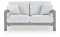Indulge in luxe outside living without sacrificing longevity. This outdoor loveseat combines on-trend texture with a sleek aluminum frame. Lounge poolside or on the porch—the comfy cushions are a chic spot for you and a partner to soak up the sun. And with cleanable, UV-resistant Nuvella® fabric in a showstopping corded look, style and durability go hand in hand.