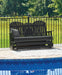 | Details | Made of MEGA-TUFF® HDPE (a high-density polyethylene), which gives the wood look you love and the weather resistance you crave, Stainless steel hardware, Designed to withstand the harsh elements of the outdoors, Includes drop-down table with 2 cup holders, Gentle gliding motion, Assembly required | |