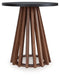 Double down on casual chic with the two-tone look of this end table. With its warm brown and matte black finishes, it reflects your eye for modern design. The trend-right slatted styling on the base brings added charm.