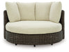 Add luxury, comfort and durability to alfresco fun. This outdoor swivel lounge chair captures the textural beauty of wicker while withstanding the elements, from rain to shine. With a UV-resistant design, the wonderfully low-maintenance Nuvella+™ fabric maintains its good looks over time. Deep, roomy seating completes the piece, offering ample space to sprawl out.