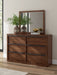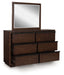 Details PCB857B6: Includes canopy, upholstered headboard, footboard, rails, posts and slats, Made with hardwood solids, mango wood veneer and MDF substrates , Side rails feature laminated solid hardwood slat support rails (or LVL) with glued and screwed blocking for added strength, Complex, rich dark brown finish, Foam headboard cushion with polyester upholstery , Measure room, including ceiling height, to ensure bed clears fans and light fixtures, Foam cushion with polyester upholstery , Foundation/box spring required, sold separately , Mattress available, sold separately , USB-A and USB-C charging ports, Power cord included; UL Listed, Assembly required, PCB857B1: Made with hardwood solids, mango wood veneer and MDF substrates , Complex, rich dark brown finish, Full-length metal rail pulls with matte black finish, 6 smooth-gliding drawers with fully finished interiors, dovetail construction and heavy-duty ball-bearing side glides (top drawers felt lined), Mirror attaches to back of dresser, Soft rounded pilasters, Raised plinth base, PCB857-46: Made with hardwood solids, mango wood veneer and MDF substrates, Complex, rich dark brown finish, Metal rail pulls with matte black finish, 5 smooth-gliding drawers with fully finished interiors, dovetail construction and heavy-duty ball-bearing side glides (top drawer felt lined), Soft rounded pilasters, Raised plinth base, PCB857-92: Made with hardwood solids, mango wood veneer and MDF substrates, Complex, rich dark brown finish, Metal rail pulls with matte black finish, 2 smooth-gliding drawers with fully finished interiors, dovetail construction and heavy-duty ball-bearing side glides (top drawer felt lined), Soft rounded pilasters, Raised plinth base,