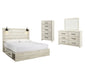 | Details | B192-46: Made of engineered wood (MDF/particleboard) and decorative laminate, Wispy white finish over replicated oak grain with authentic touch, Large-scale hardware with dark finish, 5 smooth-gliding drawers, Drawer interiors are lined with a faux linen laminate for a clean, finished look, Safety is a top priority, clothing storage units are designed to meet the most current standard for stability, ASTM F 2057 (ASTM International), Drawers extend out to accommodate maximum access to drawer interior while maintaining safety, B192B19: Includes headboard, footboard, side storage, rails and slats, Made of engineered wood (MDF/particleboard) and decorative laminate, Wispy white finish over replicated oak grain with authentic touch, Large-scale hardware with dark finish, 2 decorative sconce lights, LED with 3 AA batteries, 2 smooth-gliding storage drawers, 2 storage cubbies, 2 slim-profile USB charging ports, Power cord included; UL-listed, Bed does not require additional foundation/box spring; accommodates most zero clearance adjustable bases with the addition of a bunkie board, Mattress available, sold separately, Assembly required, B192B1: Includes dresser with mirror, Made of engineered wood (MDF/particleboard) and decorative laminate, Wispy white finish over replicated oak grain with authentic touch, 6 smooth-gliding drawers, Drawer interiors are lined with a faux linen laminate for a clean, finished look, Large-scale hardware with dark finish, Mirror attaches to back of dresser, Assembly required, B192-92: Made of engineered wood (MDF/particleboard) and decorative laminate, Wispy white finish over replicated oak grain with authentic touch, Large-scale hardware with dark finish, 2 smooth-gliding drawers, Drawers lined with faux linen laminate for finished aesthetic, 2 slim-profile USB charging stations, Power cord included; UL Listed, | |
