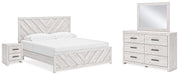 Cayboni King Panel Bed with Mirrored Dresser and Nightstand