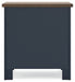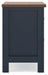 | Details | Made with hardwood solids, mindi wood veneer and MDF substrates, Two-tone finish features a dark slate blue with a light brown wood-tone top, Nickel-tone metal knobs, 2 drawers with fully finished interior, dovetail construction and heavy duty ball-bearing side glides | |