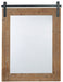 Getting the casual yet complete look you love is a breeze with this accent mirror. With its rough sawn wood and metal faux barn door track, it adds a touch of warmth to any space.