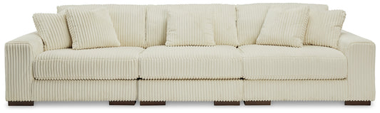 Plush and posh. Showcase your eye for on-trend texture with the statement-making cord upholstery of this sectional with chaise. Its stunningly soft fabric entices in a warm neutral hue, complementing contemporary color palettes. Sink into the cushions and plan to stay a while—this cozy living room centerpiece highlights your high-end approach to comfort and style.
