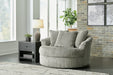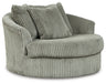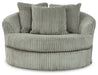 Plush and posh. Showcase your eye for on-trend texture with the statement-making cord upholstery of this oversized swivel accent chair. Its stunningly soft fabric entices in an ivory hue, complementing contemporary color palettes. Sink into the spacious cushion and plan to stay a while—this cozy living room chair highlights your high-end approach to comfort and style.