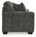 This loveseat speaks to those drawn to fresh, contemporary style with richly neutral appeal. Subtle and sophisticated, the plush upholstery and dark tri-block legs are a natural complement for so many color schemes. Two accent pillows make the seating even more welcoming. Curling up on this loveseat to enjoy a night in is never out of the question.