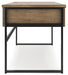 Sleek in its simplicity, this home office desk encourages you to work or study in style. Its mixed-material design brings a trendy, urban chic feel to your work area. Functional features keep the desk top clutter-free—easily tuck away essentials in the three drawers, and conceal power cords with the open raceway.