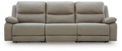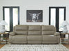 Experience ultimate comfort with this power reclining sectional. Generously cushioned with plush bustle back styling and pillow top track arms, it's wrapped in a richly neutral upholstery that’s oh-so soft. Jumbo stitching gives the sectional added definition. The one-touch power control and USB charging take the pleasure of reclining to a higher level, while a console with storage and dual cup holders marries function with great form.