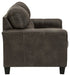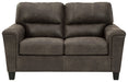 If you love the cool look of leather but long for the warm feel of fabric, you can take comfort in this loveseat. Wrapped in a fabulous faux leather with a weathered hue and hint of pebbly texture to resemble the real deal, this decidedly modern loveseat proves less is more. Elements include angled side profiling and track armrests wrapped with a layer of pillowy softness for that little something extra. Prominent jumbo stitching and clean-lined divided back styling lend fashion-forward flair.