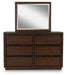| Details | PCB857B2: Includes canopy, upholstered poster headboard, footboard, rails, posts and slats, Made with hardwood solids, mango wood veneer and MDF substrates , Side rails feature laminated solid hardwood slat support rails (or LVL) with glued and screwed blocking for added strength, Complex, rich dark brown finish, Foam headboard cushion with polyester upholstery , Measure room, including ceiling height, to ensure bed clears fans and light fixtures, Foundation/box spring required, sold separately , Mattress available, sold separately , USB-A and USB-C charging ports, Power cord included; UL Listed, Assembly required, PCB857B1: Made with hardwood solids, mango wood veneer and MDF substrates , Complex, rich dark brown finish, Full-length metal rail pulls with matte black finish, 6 smooth-gliding drawers with fully finished interiors, dovetail construction and heavy-duty ball-bearing side glides (top drawers felt lined), Mirror attaches to back of dresser, Soft rounded pilasters, Raised plinth base, | |