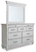 Details B777B1: Includes dresser and mirror, Made with solid wood, veneers and engineered wood, Distressed whitewash finish, Dark gray pewter-tone finished metal hardware, 7 smooth-gliding drawers, plus 2 small-scaled accessory drawers, Mirror attaches to back of dresser, Assembly required, B777B2: Includes queen panel headboard, footboard and rails, Made with solid wood, veneers and engineered wood, Distressed whitewash finish, Foundation/box spring required, sold separately, Mattress available, sold separately, Assembly required,