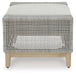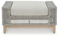 This ottoman invites your casual contemporary style outdoors. With its resin wicker in a chic neutral hue, it expertly marries refined design with durability. Breezy summer mornings and cold winter nights are made all the more comfortable with high-performance Nuvella+ fabric covering the cushion.