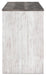 Details Made with engineered wood (MDF/particleboard/plywood) and decorative laminate for the right balance of affordability and durability, Whitewash replicated worn through paint, Top with rustic gray planked replicated oak grain with authentic touch, Decorative laminate replicates natural or man-made material surfaces with consistent color, pattern and texture, Pewter-tone pulls, 3 smooth-gliding drawers with ball-bearing side glides; vinyl-wrapped sides and back for durability, Assembly required