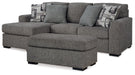 | Details | 5240418: Corner-blocked frame, Attached back and reversible seat cushions, Chaise can be positioned on either side (thanks to reversible seat cushion and movable ottoman), High-quality foam cushions wrapped in poly fiber, Accent pillows included, Pillows with soft polyfill, Polyester upholstery, Exposed feet with faux wood finish, Platform foundation system resists sagging 3x better than spring system after 20,000 testing cycles by providing more even support, Smooth platform foundation maintains tight, wrinkle-free look without dips or sags that can occur over time with sinuous spring foundations, 5240414: Corner-blocked frame, Firmly cushioned, High-quality foam cushion wrapped in poly fiber, Polyester upholstery, Exposed feet with faux wood finish, | |