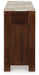 High style and functionality? Check and check. This accent cabinet's taupe, white and gray marble top and contrasting dark brown finish bring the wow factor. Sliding doors open to reveal shelves that are perfect for hiding everyday clutter. Whether you use it for storage or as a TV stand, this showpiece creates contemporary elegance with ease.